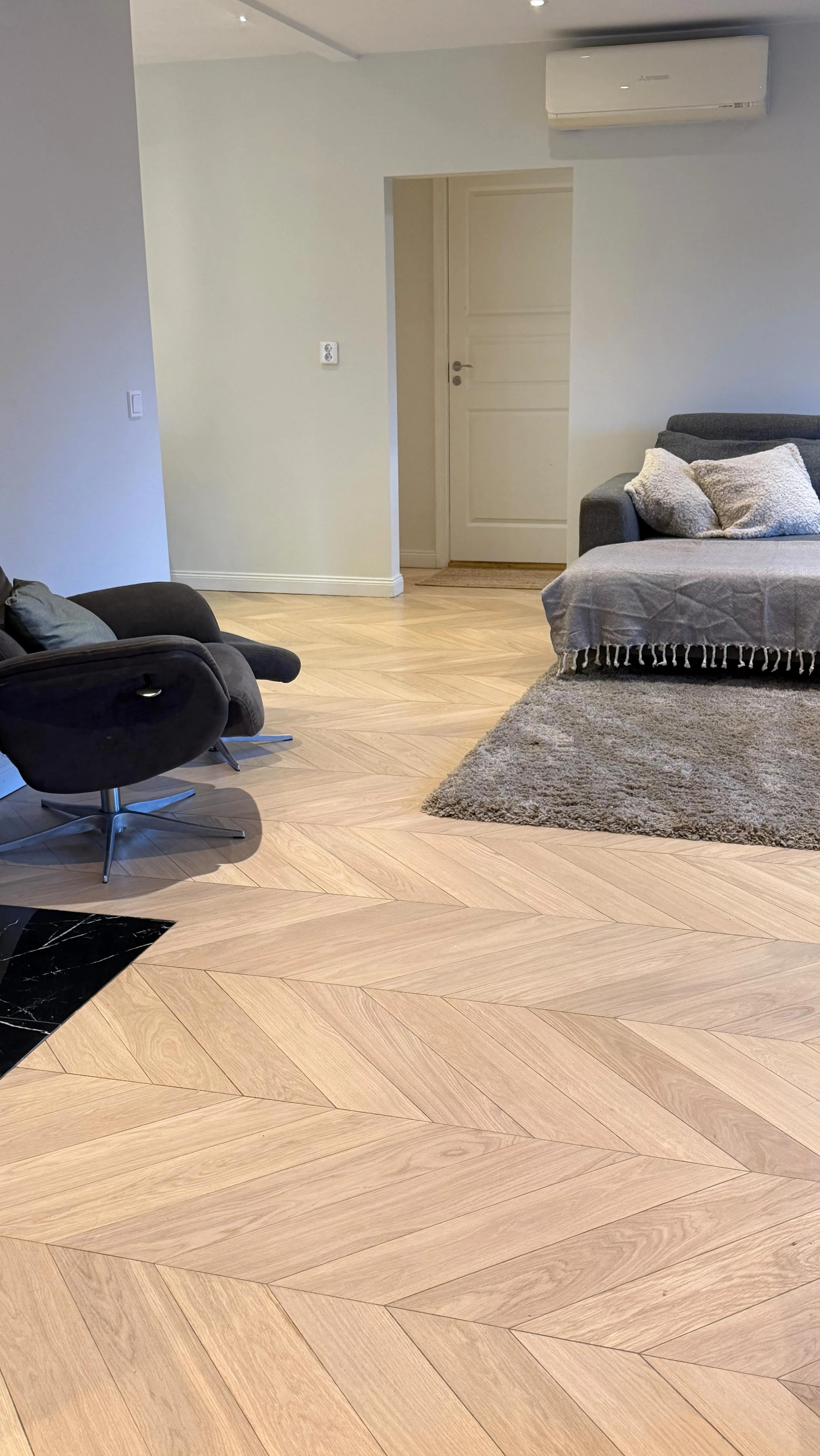 Vill man ha ett golv som lyfter och ändrar hela rummets karaktär är Chevron det perfekta valet. Unik personlighet, äkta trä och vackert hantverk är orsaken till att detta trägolv alltid kommer kännas rätt.